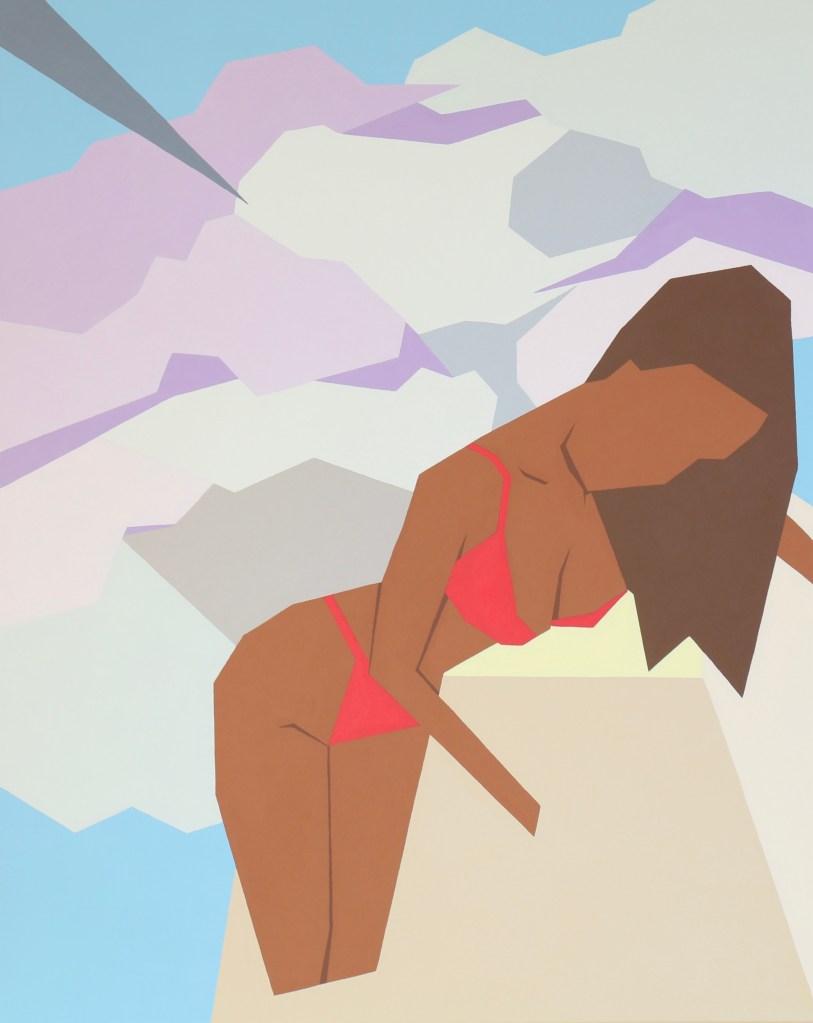 Figure Carrying the Weight of the Clouds on her Shoulders, 2025 – 100 x 80 cm – Acrylic on canvas